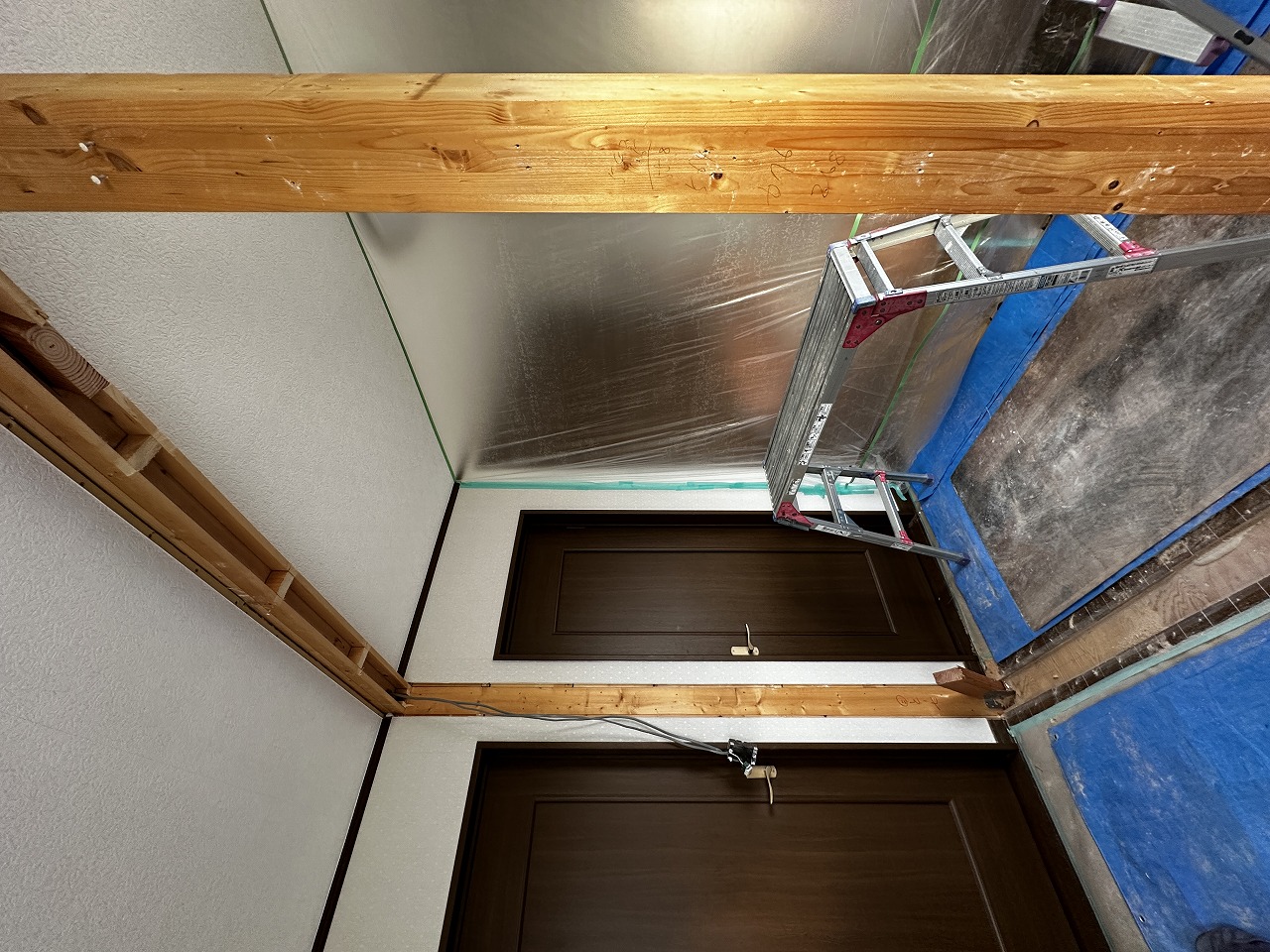 | 改修内容 | 洋室間仕切り撤去、壁解体、解体部補修、クロス補修、電気工事、塗装工事 | ||||