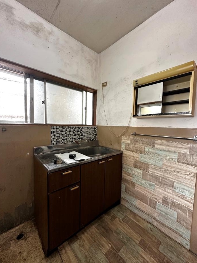 洗面化粧台交換、配管移動、壁塗装、床貼替
